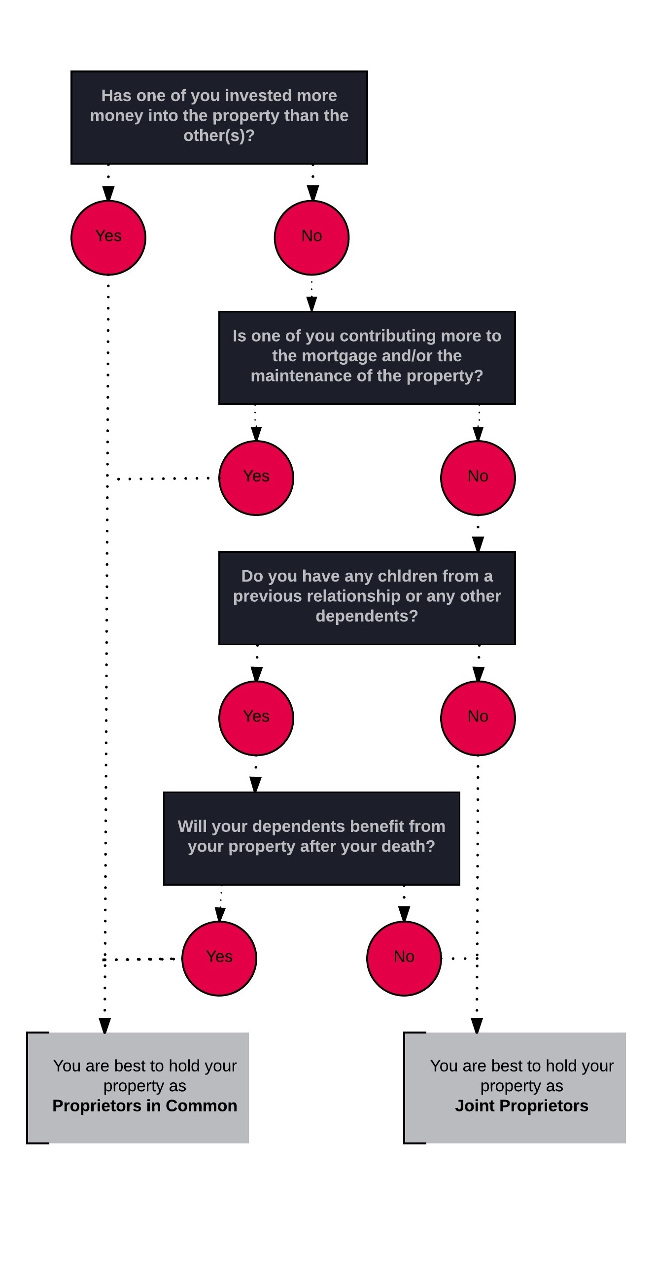 It is important that your property is held in a way that is most appropriate and effective for you. If you have any uncertainty about what is best for you, review this series of questions designed to help you determine if it would be most beneficial for you as Joint Proprietors or as Proprietors in Common.