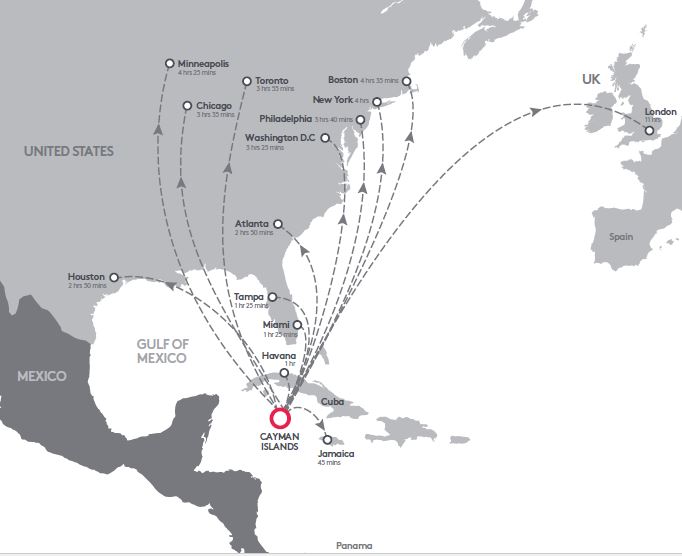 Cayman's air travel links extend to the US, the UK, Canada and Central America, as well as Jamaica and Cuba, and the combination of top-class education and health services and very low crime rates make the islands an attractive community environment.